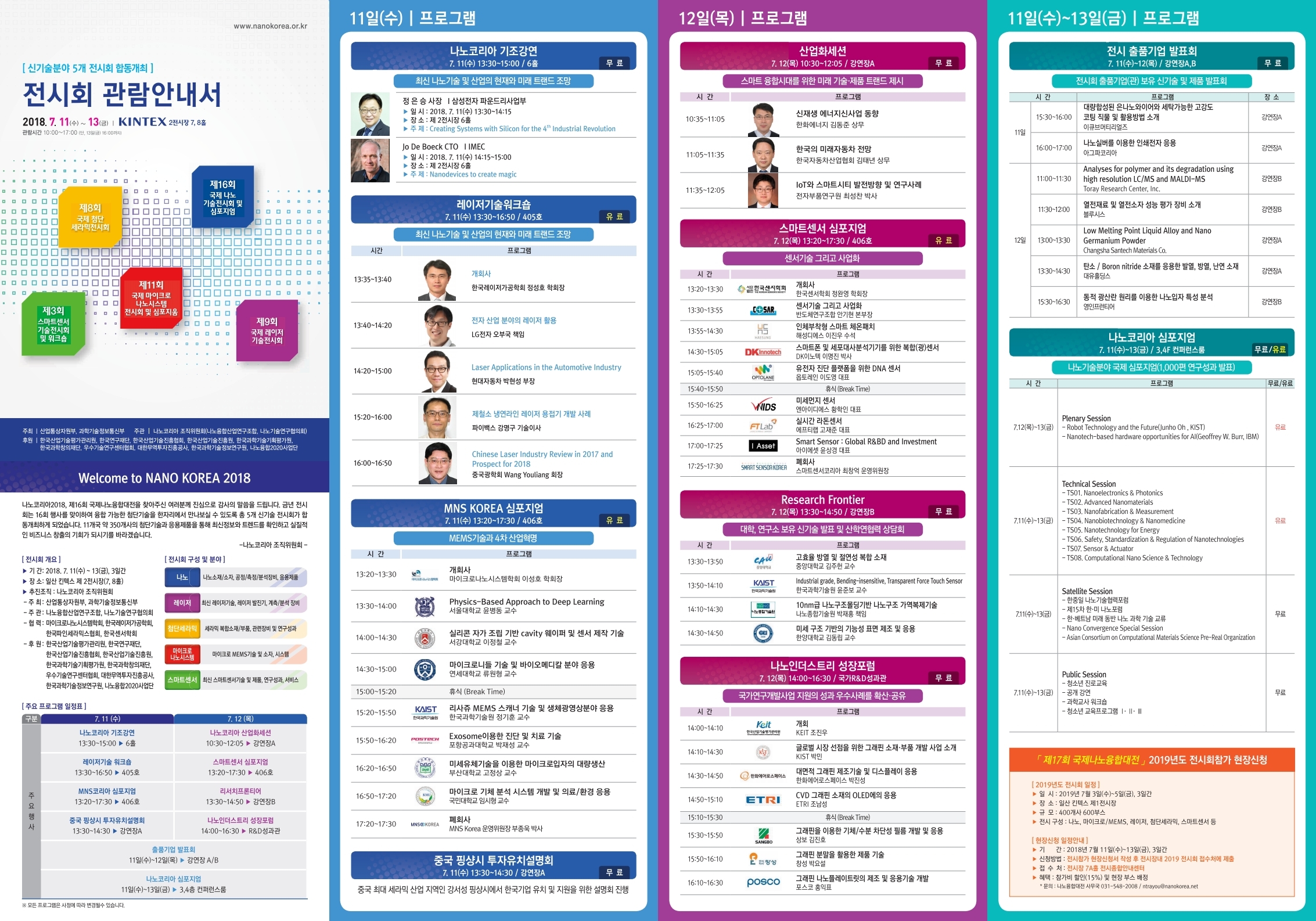 나노융합대전 2018 (나노코리아, MNS코리아, 레이저코리아, 첨단세라믹전, 스마트센서코리아) 전시회 관람안내서 첨부하였습니다.