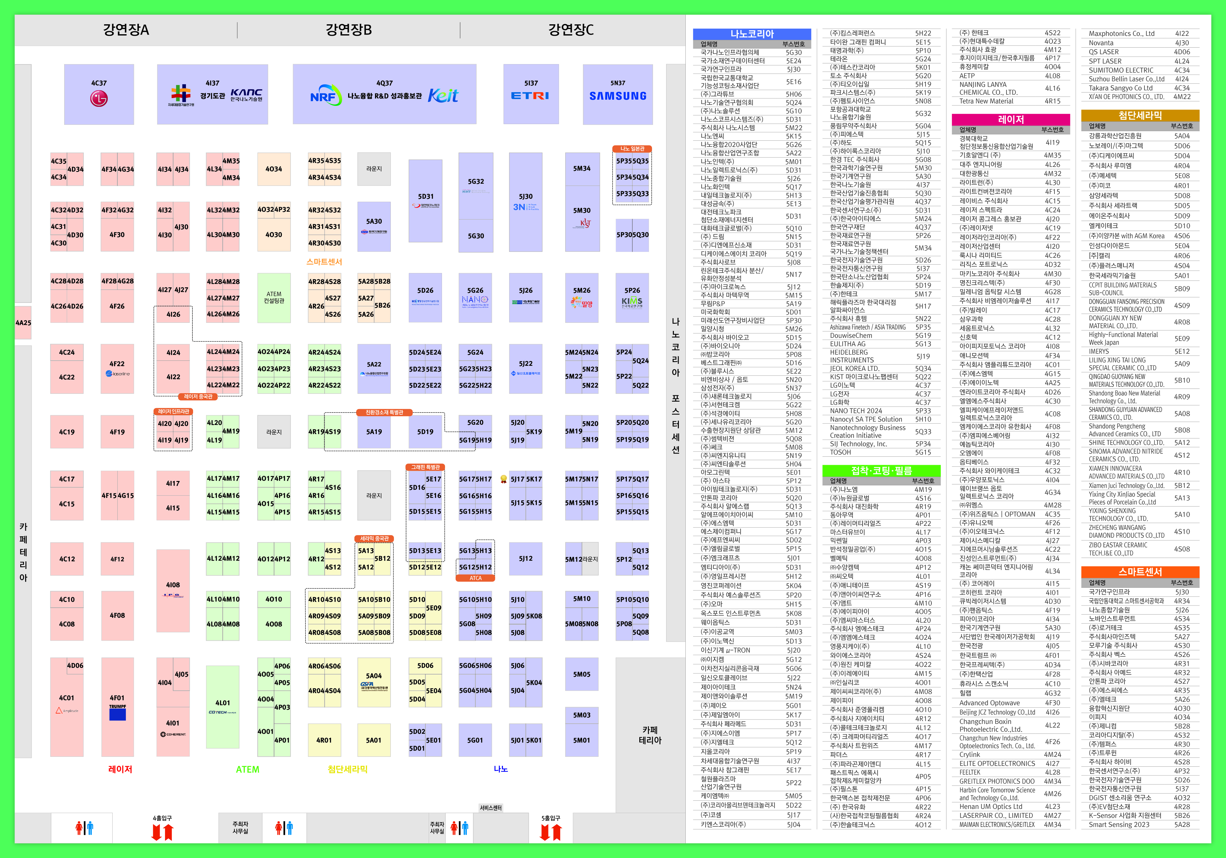 2023 나노코리아/아템페어/레이저코리아/첨단세라믹전시회/스마트센서코리아 최종 부스배치도 및 참가업체 목록을 공지드립니다.