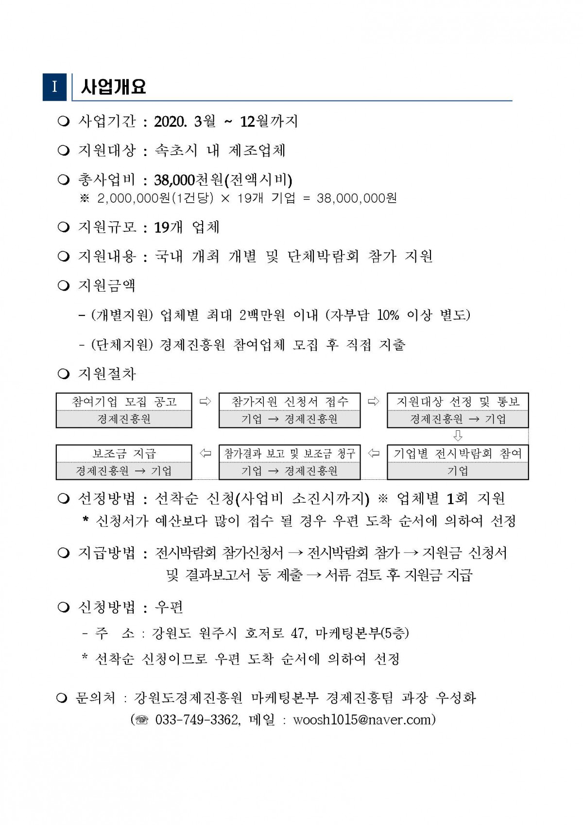 | [신청가능] [속초시] 2020 속초시 전시박람회 참가 지원사업 참여기업 모집 공고 | |